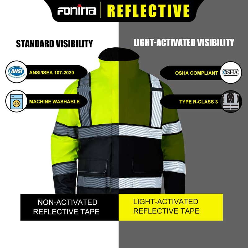 Increased Safety: Wearing ANSI ISEA 107-2020 compliant safety gear significantly enhances worker visibility, reducing the risk of accidents and injuries, especially in high-risk environments like construction sites or roadways.