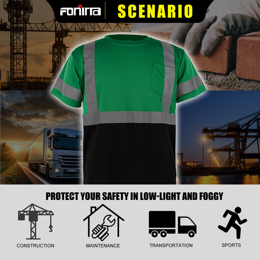 T001 Men's High Visibility Class 2 Orange Reflective Black Bottom Work Safety T-Shirt